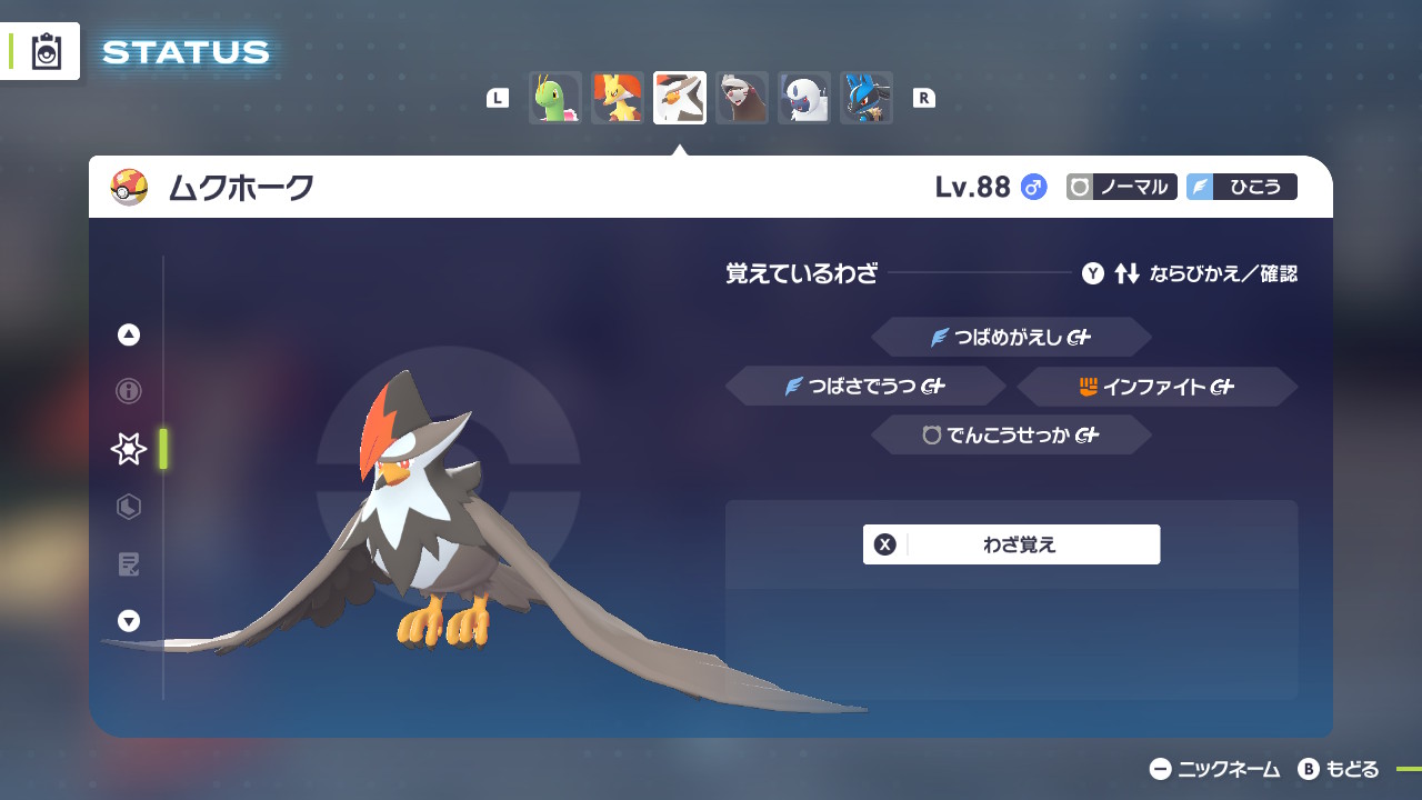 とりもげは自軍に飛行している高レベルのめぼしいポケモンがイベルタルとサーナイトしかいなかったので、後にムクホークにこの役割を頼みました。