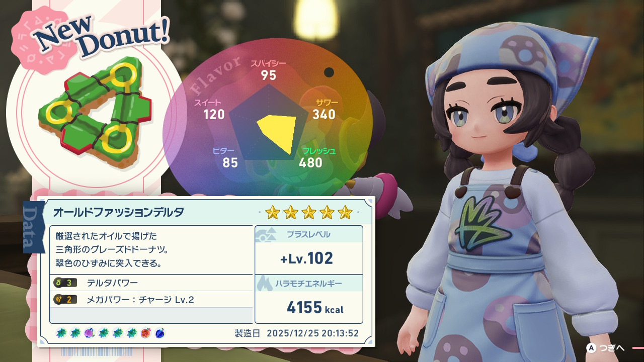 必要な数値は、「スイート120以上、スパイシー40以上、サワー340以上、ビター40以上、フレッシュ390以上」です。三角形ですね。