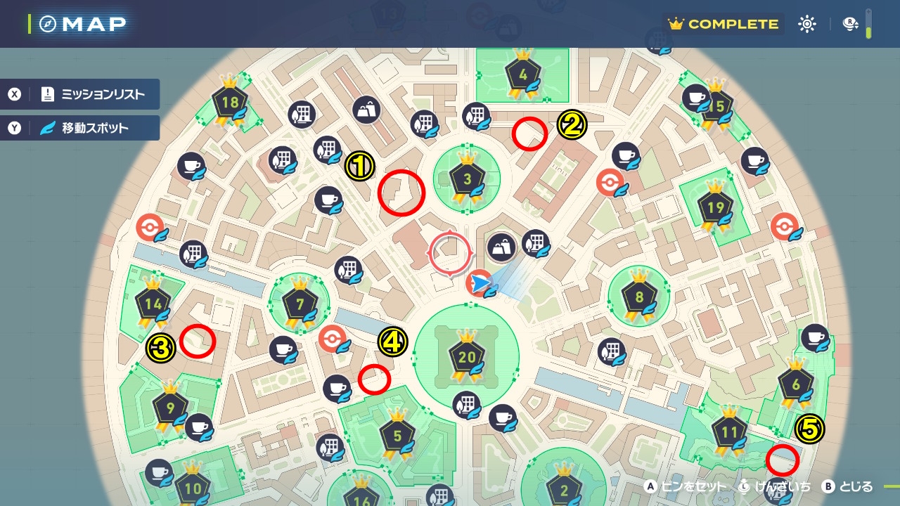 ⑤の「ワイルドゾーン11の東」の方が、ワイルドゾーン11に飛べばすぐ近くにミント屋があるのでおすすめ。