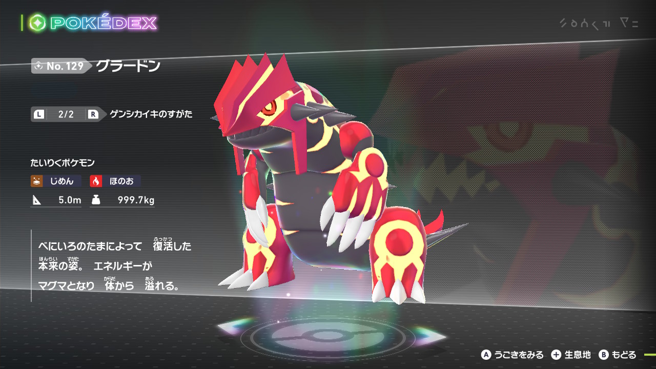 ポケモンはお国柄か分かりませんが模様を入れるデザインが少ないので、グラードン、カイオーガ、レックウザのゲンシカイキのデザイン性はポイントの高い変化です。